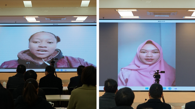 会上,来自老挝、非洲、印尼留学生校友分会的校友代表万淑怡、媞娅、蒂娜同学分别通过视频和发言展示了自己在家乡的近况并回顾了在交院学习生活的美好时光,表示今后将继续做好中外友谊的使者,通过校友会这个平台,以饱满的热情把留学生校友们组织好、服务好。