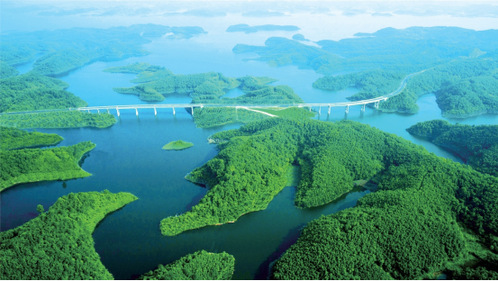 丹江口环库公路全长429公里,一边依临清澈的丹江口水库和幽深多姿的岛屿,一边是国家森林公园。沿途更是风光秀美,三季有花、四季见绿,被誉为“一条深呼吸的路”。