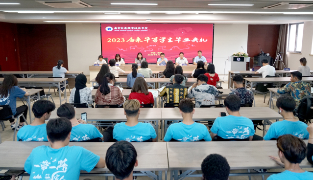 典礼开始,老师同学共同观看了《挝行挝诉,中国元素》《归园田居》《河西走廊》三部留学生风采展示视频和《感恩NJITT,再见NJITT》留学生毕业感言视频,回顾了2023届留学生多姿多彩的校园生活,感受到了同学们在南京交院学习的辛苦付出和取得的突出成绩。
