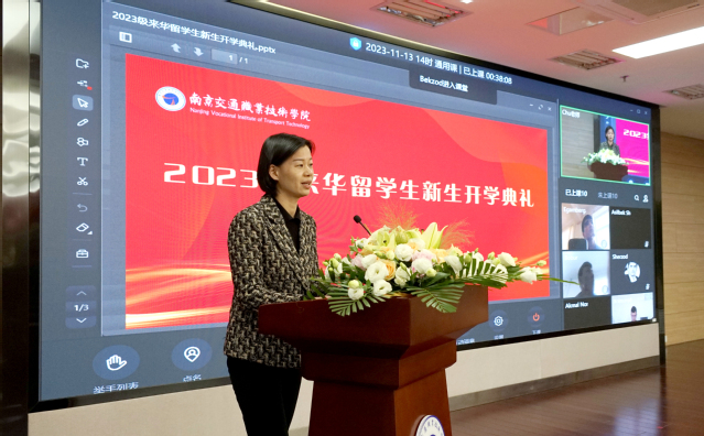 11月13日下午,学院2023级来华留学生新生开学典礼在图书馆B203室隆重举行。党委书记张毅、副院长刘雪芬出席典礼,国际合作与交流办公室、教务处、学工处负责人,汽车工程学院、运输管理学院、电子信息工程学院领导班子、教师代表,国合办全体工作人员及2023级全体留学生参加典礼。开学典礼由刘雪芬副院长主持。
