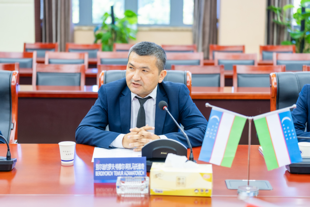 王道峰院长对别尔迪约罗夫教授一行乌方老友来访表示热烈欢迎。他表示自2022年两校成立“郑和学院·宝船工坊”以来,双方在专业建设、学生培养、教师交流、技能培训、学术研究等诸多方面取得了丰硕的成果,并期待未来继续深化合作,将该项目打造成境外办学项目的知名品牌,为乌兹别克斯坦及其他中亚地区“一带一路”沿线国家的产业发展提供更多的人力资源支持。