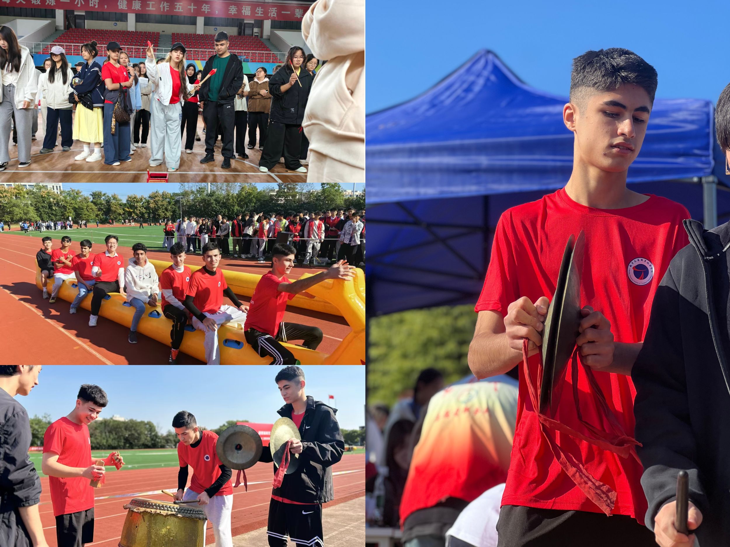 活动前,留学生《文化体验》课教师精心设计教案,结合运动会上中国民族传统体育运动项目拟订详细学习参观体验内容。整个文化体验活动采用课内教学、现场参与、观摩学习相结合的方式进行。课内教学环节通过中英版课件学习,让留学生们了解了蹴鞠、马球、捶丸等中国传统体育项目的历史渊源;现场参观环节,让留学生深入赛场,通过参加入场仪式、观摩比赛等活动,让他们熟悉了关于中国传统体育项目比赛的具体要求。现场参与环节,留学生们在投壶项目中展示自我,感受投掷带来的快乐与成功;在旱地龙舟项目中他们共同前进,感受团队协作的力量与激情;在观摩学习中,激荡的锣鼓声则让留学生们领略了中国传统乐器的魅力,他们挥舞着鼓槌,敲打出铿锵有力的节奏,为活动增添了热烈的气氛。