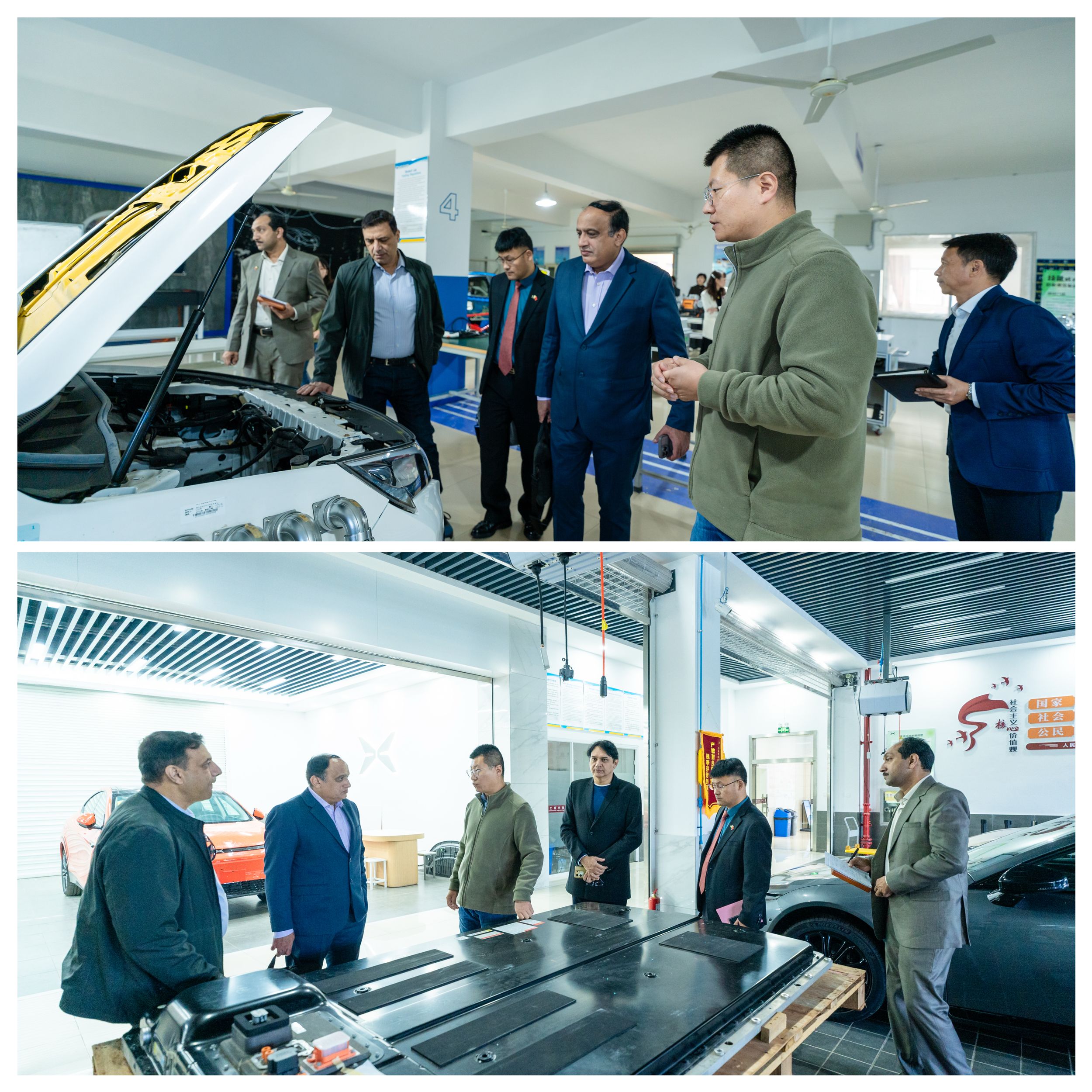 会前,沙希德·扎曼一行参观了汽车工程学院实训中心,对学校的实训场所建设、校园环境建设给予了高度评价。