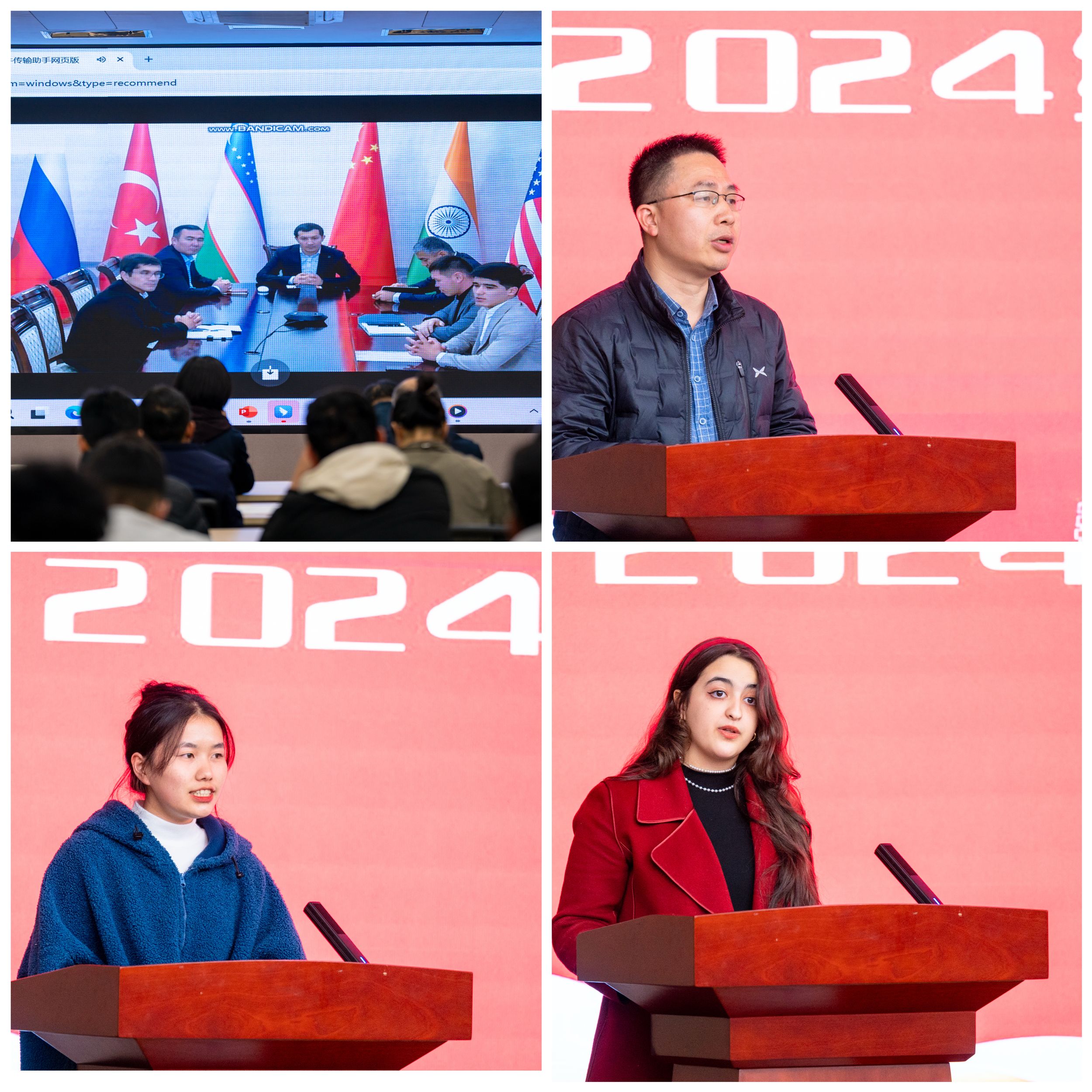 11月25日下午,学院2024级来华留学生开学典礼在图书馆B203室隆重举行。党委副书记文爱民出席,党委宣传部、国际合作交流办公室、教务处、学工处及二级院系相关负责人,教师代表、国合办全体工作人员与2024级在校留学生现场参加;乌兹别克斯坦吉扎克国立技术学院教师代表以及2024级全体新生线上参加开学典礼,本次活动由党委宣传部袁茜部长主持。