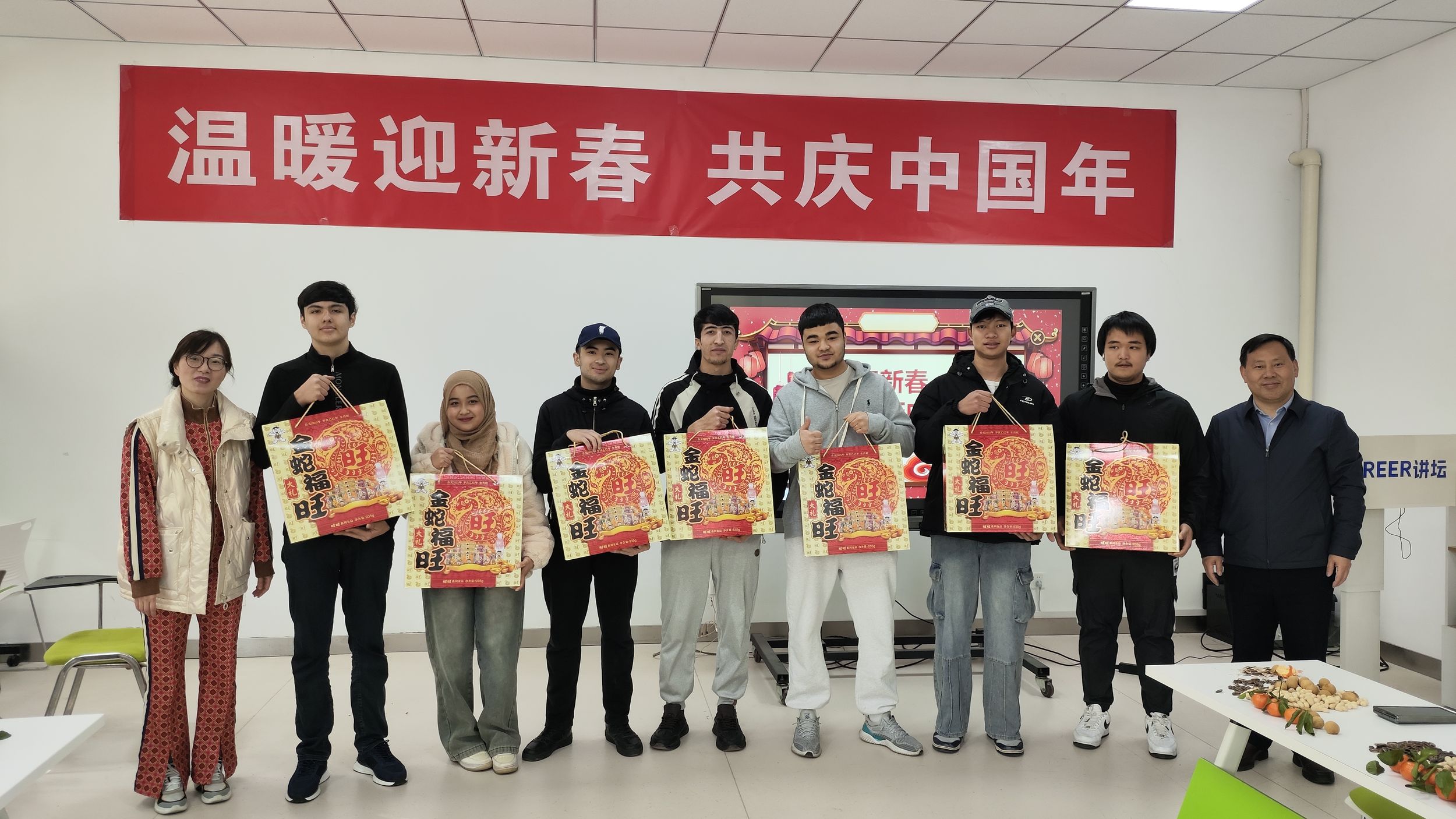 活动期间,文书记给留学生们赠送了新春“大礼包”并向留学生们致以诚挚的新年问候。