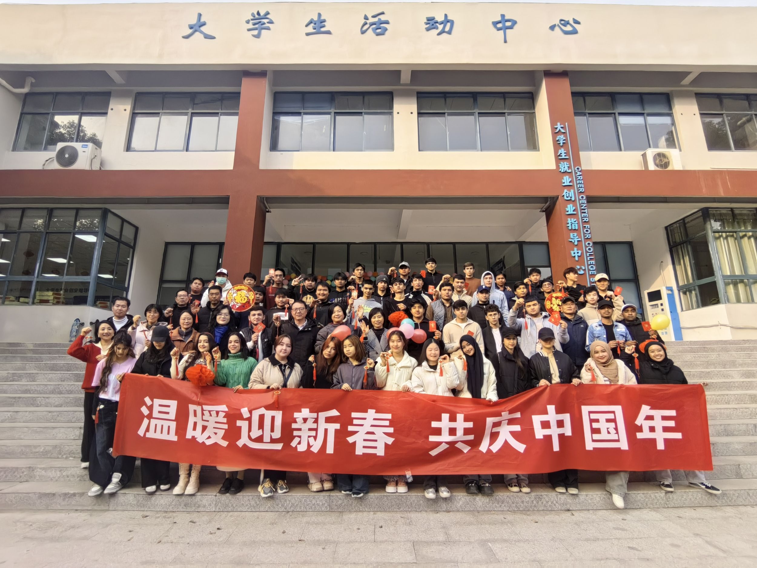 1月22日,正值中国小年之际,学院国合办在大学生活动中心101举办了以“温暖迎新春 共庆中国年”为主题的留学生联欢会。学院党委副书记文爱民出席活动并致辞。学院党委宣传部部长袁茜、国合办全体工作人员、班主任以及寒假留校的72名留学生欢聚一堂,共同迎接新春佳节的到来。