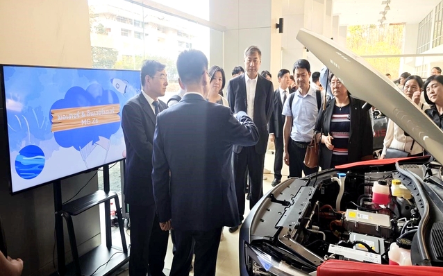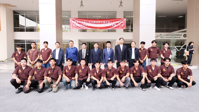 在对泰国的访问交流中,我校参访团随团到访泰国兰纳皇家理工大学,与泰国兰纳皇家理工大学代理校长乌滕•坎南、中国驻清迈总领事馆二等秘书谷晶晶、泰国工业联合会以及泰国公平教育基金会董事会领导代表、中泰院校师生代表举行中泰人文交流和国际产教融合交流推进会。姜军副院长作为合作院校代表,重点介绍了与泰国兰纳皇家理工大学共建的“经世学堂(新能源汽车检测与维修技术)”专业合作办学、人才培养及国际化资源开发等项目实施情况。他指出,双方高校携手共建“新能源汽车检测与维修技术经世学堂”以来,在专业建设、学生培养、技能培训、人文交流等诸多方面取得了丰硕的成果,2024年两校入选首批“中国—东盟千校携手计划”项目学校。泰国兰纳皇家理工大学来华留学生宋鹏同学分享了在我校难忘的学习生活经历。参访团随团一行走进“经世学堂(新能源汽车检测与维修技术)”教学现场,切身感受到了新能源汽车专业的建设成果,特别是在教学内容、实践平台及国际合作等方面的积极探索与实践,赢得了访问团一行的广泛赞誉。