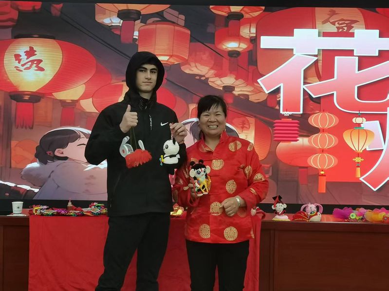 在实践体验环节,王老师现场演示中国传统花灯制作绝技,从竹篾弯折的“九分力道”到绢纱糊裱的“呼吸节奏”。留学生们跟拍学做,在“一灯千工”的匠心演绎中,深入体验了东方造物哲学“天人合一”的精神内核。俄罗斯学生毛利在完成兔子灯后感慨:“每一根竹条都在诉说文明对话的故事,这比教科书更直观生动!”现场还有三位留学生有幸获得了王老师奖励的秦淮灯会展品。