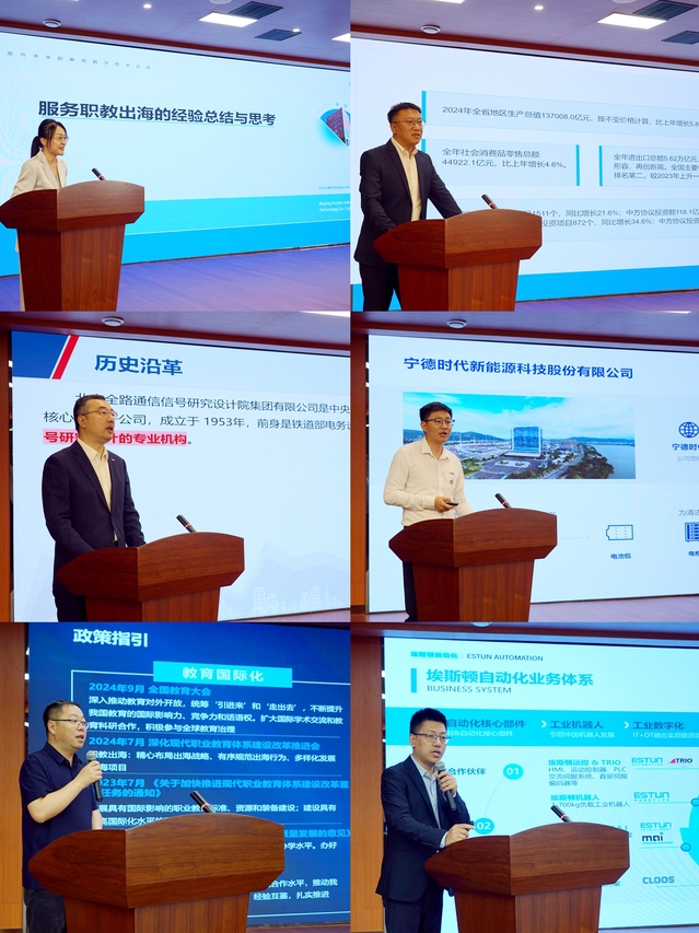企业聚力促共赢,校企同行服务全球产业布局。北京华晟经世等5家龙头企业代表深入剖析了全球产业链人才需求图谱。北京全路通信信号研究设计院集团有限公司分享了中国高铁通信信号在“培养大国工匠、能工巧匠、高技能人才”产教融合方面的宝贵经验。宁德时代介绍了全球新能源后市场人才培养的创新实践。中兴通讯分享了其在搭建数智教育新基座,打造职教出海新引擎方面的积极探索。南京埃斯顿自动化股份有限公司则阐述了在企业国际化布局及国际进程人才培养方面的创新探索。代表们还实地考察中兴牧龙实验室、埃斯顿自动化智能生产线,见证了“中国智造”对技术技能人才培养提出的新要求。