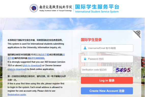 申请人登录外国留学生网上报名系统(njitt.at0086.cn/student),注册帐号,在线填报、提交申请材料。