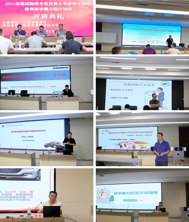 继2022年江苏省职业学校交通运输类专业负责人领导力提升培训顺利结业后,因疫情推迟的2021年专业负责人专业骨干教师教育教学能力提升培训班于8月13—21日在学院顺利举办。学院副院长杨益明,汽车工程学院院长刘阳、党总支书记赵勇出席开班典礼。全省43所职业学校交通运输类专业的50名专业教师参加本次培训。