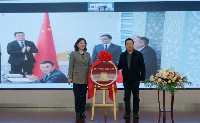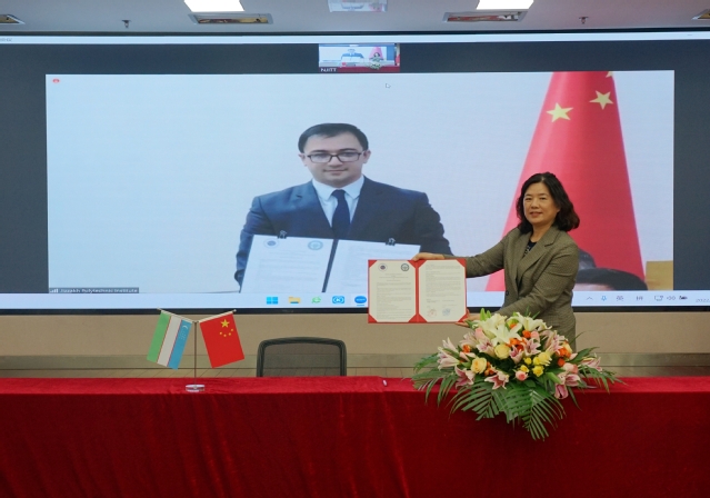 在热烈的氛围中,贾俐俐和乌斯曼库洛夫·阿利舍尔作为两校代表共同签署合作协议并为郑和学院·宝船工坊揭牌。