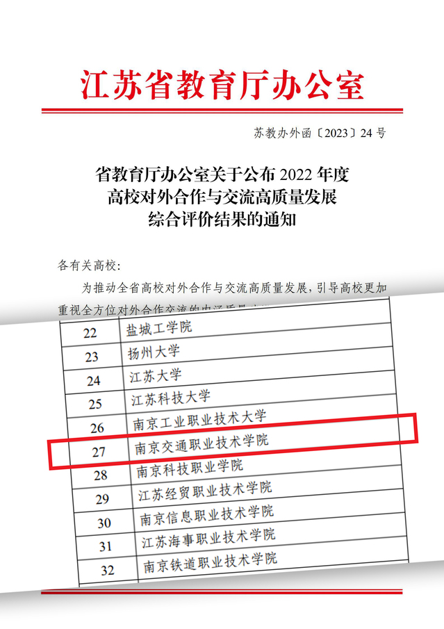 近日,省教育厅公布2022年度高校对外合作与交流高质量发展综合评价结果。经过高校自评、专家材料评审、现场交流评价结果,学院获评A等次。