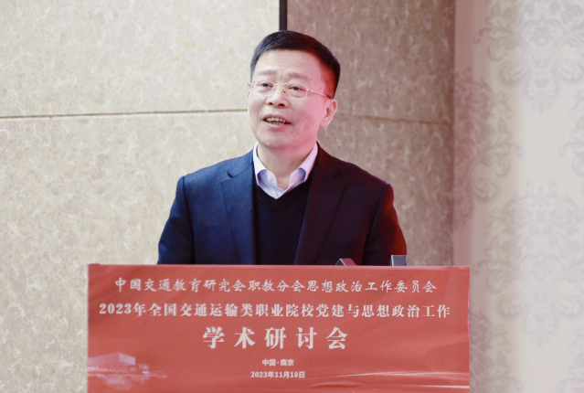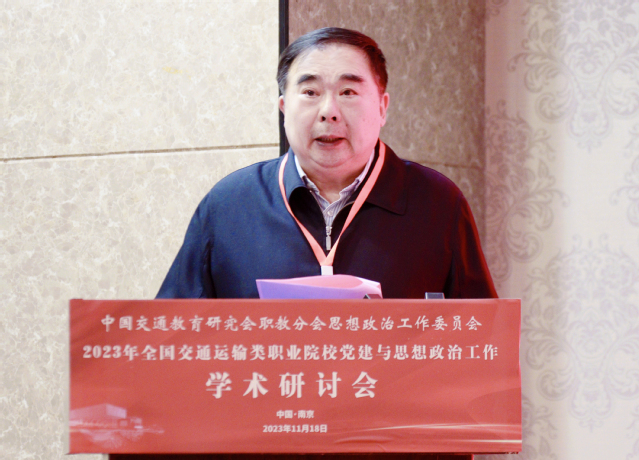 金凌副厅长代表江苏省交通运输厅对本次研讨会的成功召开表示祝贺,对中国交通教育研究会坚强领导和职教分会的指导帮助、对兄弟省份交通运输类职业院校的关心支持表示感谢。他希望全国交通运输类职业院校携手同心、和衷共济、抢抓机遇,聚焦目标导向、问题导向、效果导向,切实加强党对教育工作的全面领导,始终坚持社会主义办学方向,落实立德树人根本任务,构建党建引领发展新格局、探索思政育人新路径,提高党建和思政工作质量与水平,共同推动交通职业教育高质量发展。