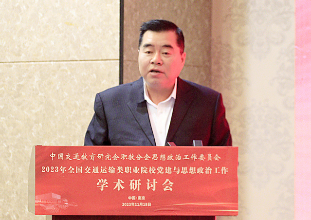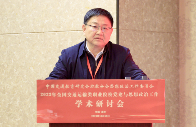 11月18日,由学院承办的2023年全国交通运输类职业院校党建与思想政治工作学术研讨会成功举办。江苏省交通运输厅党组成员、副厅长金凌,中国交通教育研究会会长刘卫民,中国交通教育研究会副会长、职教分会理事长杨泽宇,学院党委书记张毅,学院党委副书记、院长王道峰,以及来自全国25所交通运输类职业院校的党委书记、副书记、副校长、党委职能部门负责人、马克思主义学院负责人等60余人参加。研讨会由中国交通教育研究会职教分会思政工作委员会主任王东平主持。