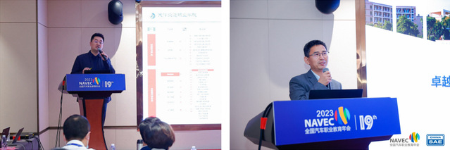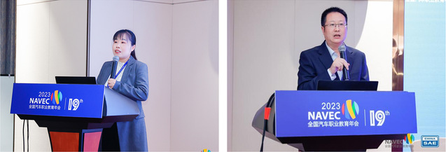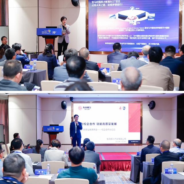 宝马中国培训学院经销商人力资源发展高级经理朱虹女士和东风柳州汽车有限公司副总经理林长波先生从企业角度分别分享了“宝马校园英才教育BEST项目发展与创新”“东风柳州汽车聚力校企合作,赋能高质量发展”的主题报告。分享了企业在搭建产教融合平台、校企合作赋能企业提质增效和服务职业院校提质增效的成果。