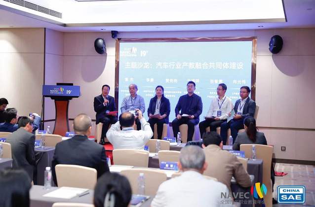 在主题沙龙环节,南京交通职业技术学院原党委书记贾俐俐教授,天津交通职业学院院长于海祥教授,奇瑞企业大学执行校长李康先生,重庆长安汽车股份有限公司产教融合项目经理张智勇先生,上汽通用五菱人力资源部产教融合项目经理冉光伟先生就当前产教融合热点话题“行业产教融合共同体建设”展开探讨,就行业产教融合共同体可以解决的问题和重点关注的挑战等进行探讨与交流。