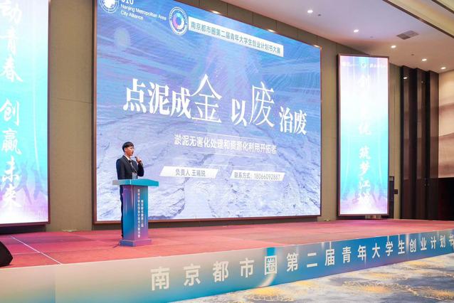 近日,由南京市人社局、芜湖市人社局联合牵头,镇江、扬州、淮安、马鞍山、滁州、宣城、常州金坛、常州溧阳人社部门共同参与,以“舞动青春 创赢未来”为主题,开展南京都市圈第二届青年大学生创业计划书大赛。学院“点泥成金,以废治废——淤泥无害化处理和资源化利用开拓者”(项目负责人:王曦锐,指导教师:张健、郭振华)项目入围决赛,与本科生团队同台竞技,从都市圈近千个优秀创业项目中脱颖而出,最终以总分第一的优异成绩获一等奖。