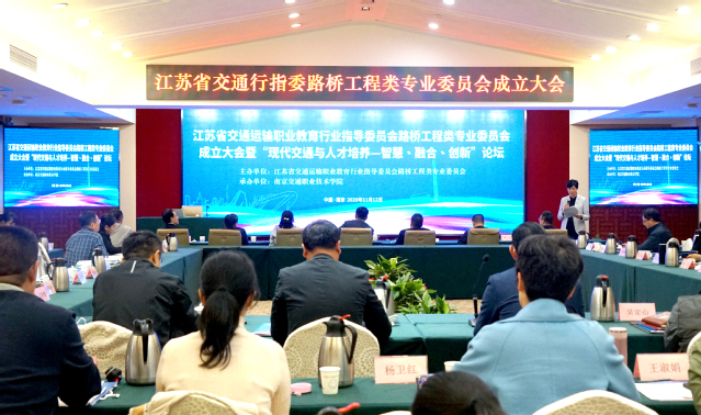 11月12日下午,江苏省交通运输行业指导委员会路桥工程类专业委员会成立大会暨“现代交通与人才培养—智慧、融合、创新”论坛在学院召开。江苏省交通运输行指委主任委员、省交通运输厅党组成员、副厅长金凌,交通运输行指委副主任委员兼秘书长、学院党委书记贾俐俐,交通运输行指委副主任委员、学院院长张毅,交通运输行指委副主任委员李虎、省交通运输厅政治处副处长李进及相关院校、企事业代表出席。大会由路桥专委会主任委员、学院路桥与港航工程学院院长蒋玲主持。