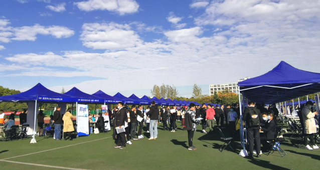 为做好此次招聘会工作,学院在9月份就发布了招聘会邀请函,并借助学院就业网、招生就业处微信公众平台、用人单位QQ群、校友微信群等多种渠道进行广泛宣传和邀请,同时主动对接用人单位进校开展专场宣讲,加强毕业生与用人单位之间的提前了解和交流。同时,学院首次将招聘会举办场地安排在运动场,扩大了企业参会规模,为毕业生提供了更多选择机会。现场还将招聘会区域划分为汽车、建工、物流、电子等多个招聘专区,提高了毕业生求职应聘的针对性和有效性。