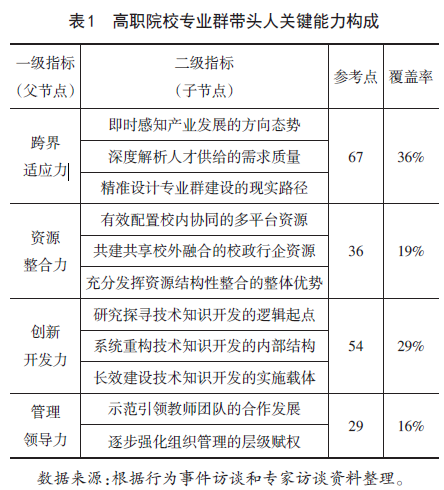 由此,本研究认为,专业群带头人的关键能力可以理解为以敏锐的行业嗅觉、高超的技术能力以及高尚的人格魅力等优势特长,在专业群内部形成以核心专业为引领的各专业相互关联和相互依存的融合整体,在专业群外部建立与产业链发展和岗位群需求的紧密联系,进而推动专业群内部教学改革且区别于普通教师岗位胜任能力特征的各类能力总和。