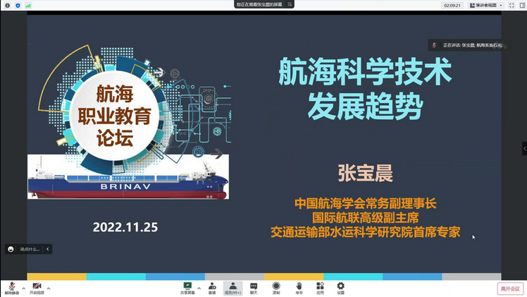 中国航海学会常务副理事长张宝晨教授作了题为“航海科技发展趋势”的主旨报告。院所代表、国外代表和学校代表分别以不同的视角,先后围绕当前疫情常态化形势下,航海职业教育人才培养过程中存在的前沿热点问题和实践中亟需解决的关键问题进行交流探讨。