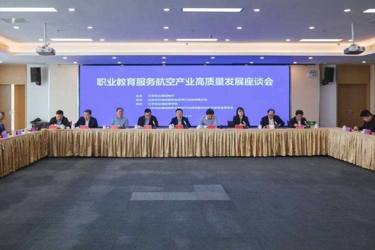 在座谈会上,江苏省交通运输职业教育行指委副主任委员、南京交通职业技术学院院长张毅宣读了《关于同意筹建江苏航空职业教育联盟(江苏航空产教融合共同体)的批复》,航空工业江西洪都航空工业集团有限责任公司、东部机场集团有限公司的代表分别作了题为《传承历史 砥砺奋斗 建设高质量航空产业人才队伍》和《加快人才培养 助推江苏民航高质量发展》的专题报告,江苏省交通技师学院介绍了江苏航空职业教育联盟(江苏航空产教融合共同体)筹建工作进展情况,中国民用航空局适航审定司、南京航空航天大学、航天海鹰(镇江)特种材料有限公司、中国东方航空江苏有限公司、南京交院等12家单位代表围绕江苏航空产业现状与发展趋势、航空职业技能人才培养、航空类院校(专业)发展、校企联合、产学研合作等方面进行交流发言。与会代表一致认为,深化校企合作、推进产教融合是提升航空技术技能人才培养质量的关键举措,职业教育对航空产业高质量发展具有重要人才支撑作用,急需建立一个平台,汇聚政行企校四方力量,破解人才培养供给侧与产业需求侧匹配度不高等难题。