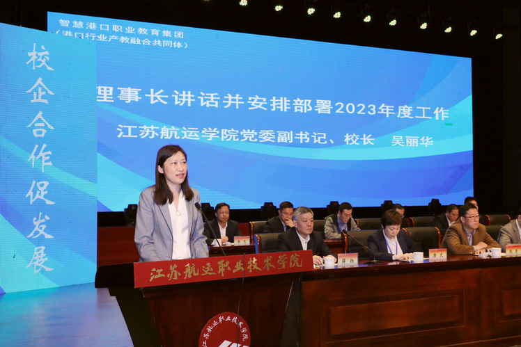 集团(共同体)理事长江苏航运职业技术学院院长吴丽华介绍集团成立情况,并提出了2023年集团工作的总体思路和主要任务。