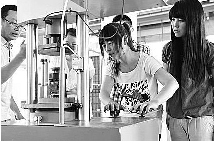 学生在做建筑材料性能测试