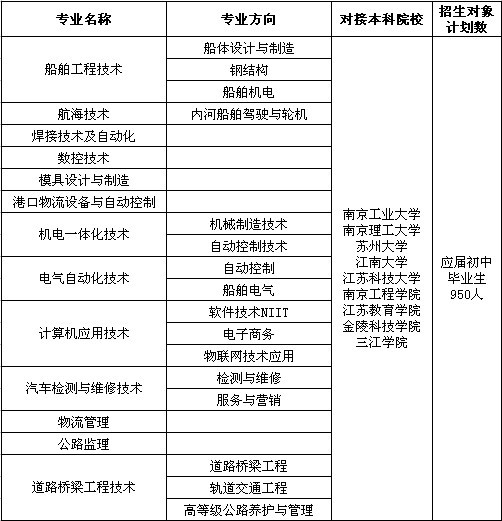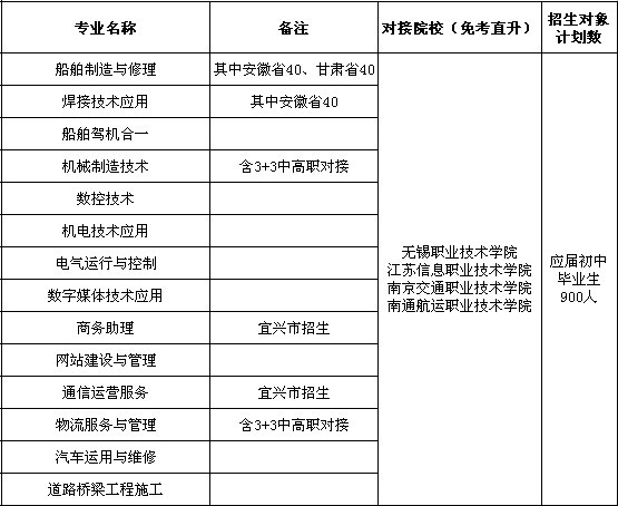 江苏省无锡交通高等职业技术学校2013年招生计划