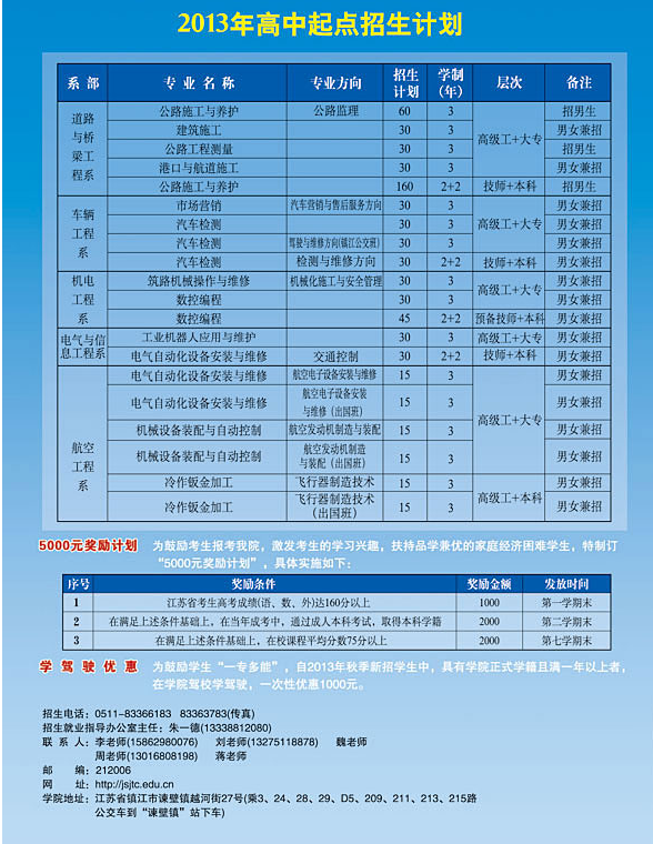 江苏省交通技师学院2013年招生计划