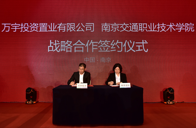 4月24日下午,贾俐俐书记代表学院与南京万宇投资置业有限公司吕金航董事长在江宁会展中心签定合作意向协议。校企双方为进一步激发大学生“大众创业,万众创新”的氛围和活力,坚持平等互利、共同发展、优势互补的原则,以“产教融合、校企合作”为指导,推进技术性人才培养的模式创新,进行产学研全方位合作。