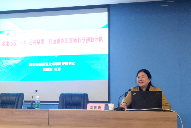 贾俐俐书记以“全面落实1+X证书制度,建设高水平教师教学创新团队”为题,为培训班全体学员授课,深入剖析了全面落实1+X证书制度对教师队伍建设带来的挑战,分享了我院在1+X证书制度背景下教师教学创新团队建设的经验。