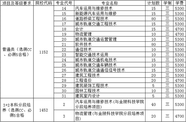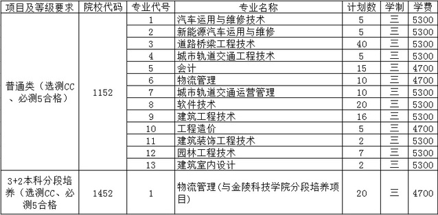 南京交通职业技术学院2020年江苏省普高招生计划