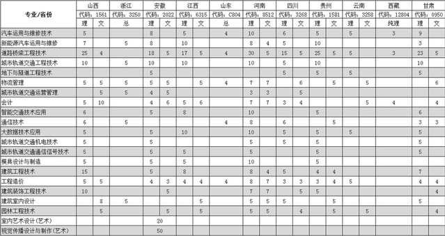 南京交通职业技术学院2020年外省普高招生计划