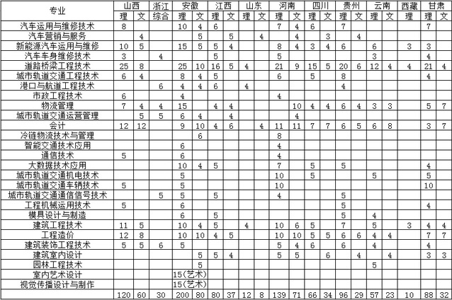 南京交通职业技术学院2019年外省普高招生计划