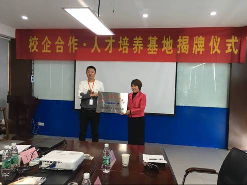 揭牌仪式后,校企双方就公司员工培训工作进行了深入的交流。总经理助理陈坤带领师生对公司的运营情况进行现场参观和业务交流。