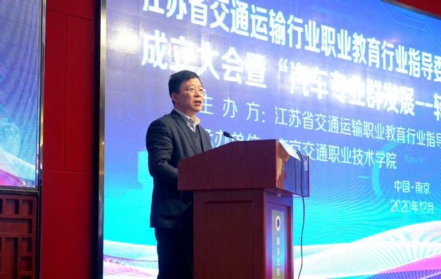 学院院长张毅致欢迎词,省交通运输厅政治处副处长李进宣读了《江苏省交通运输职业教育行业指导委员会汽车技术类专业委员会委员名单》。专委会成立大会上举行了副主任委员与秘书长聘书颁发仪式,审议通过了《汽车专委会工作细则》和《汽车专委会2020年工作计划》。