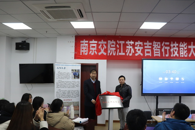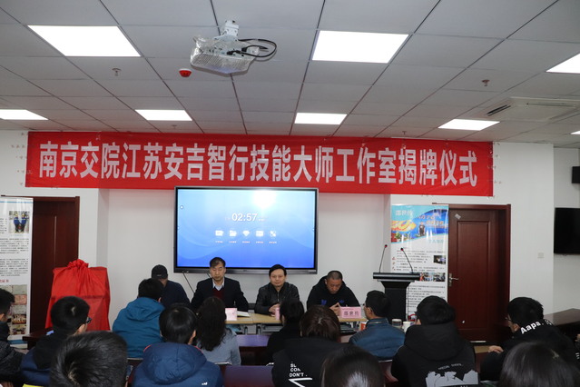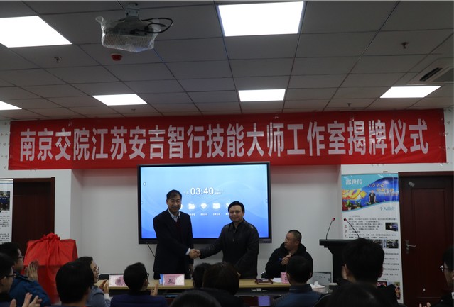 为提升我校实践育人、传承工匠精神的职教理念,南京交通职业技术学院与江苏安吉智行物流有限公司合作建立技能大师工作室,并于2020年1月2日在汇贤楼产教融合基地举行了签字及揭牌仪式。