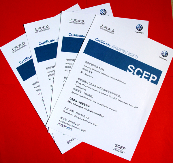 近日,南京交院汽车工程学院教师郭兆松、刘奕贯、郭伟东、万彤等四名教师,全部通过上汽大众SCEP(SAIC Volkswagen College Education Project,上汽大众-职业学校合作培养项目)项目基础师资的认证考核,并全部被授予“骨干教师”荣誉称号。