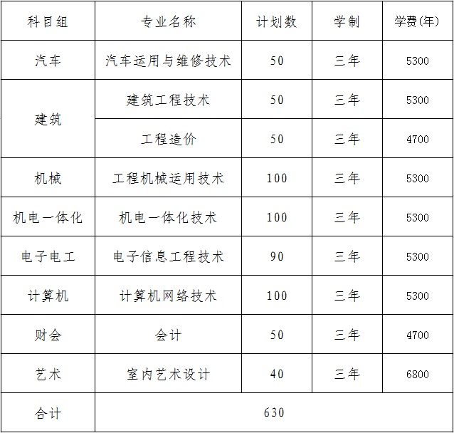 南京交通职业技术学院2018年对口单招招生计划