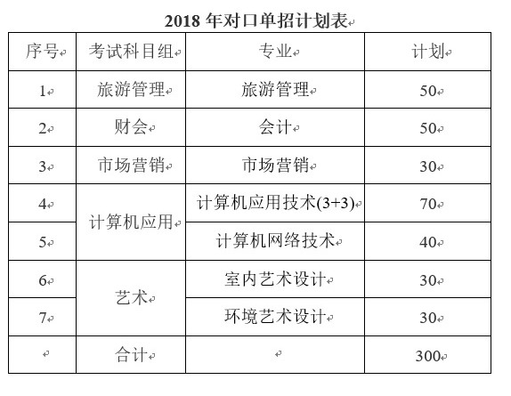南京铁道职业技术学院2018年对口单招计划表