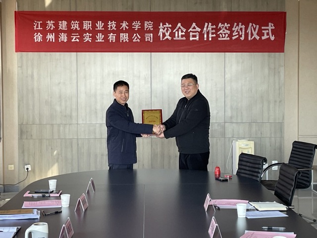 签约仪式上,吴兆立院长首先介绍了我校的历史沿革、专业设置、办学特色、办学成就和未来发展规划,并结合我院具体专业特色,指出双方在产教融合、校企合作、人才培养上可以共同探索的有效路径。严勇总经理表示愿意与我校进一步深化合作,培育人才,并全面介绍了公司的发展历史、业务布局、校企合作需求以及在徐科技企业孵化的典型经验。随后,校企双方签署了战略合作协议,吴院长为徐州海云实业有限公司授牌并合影留念。