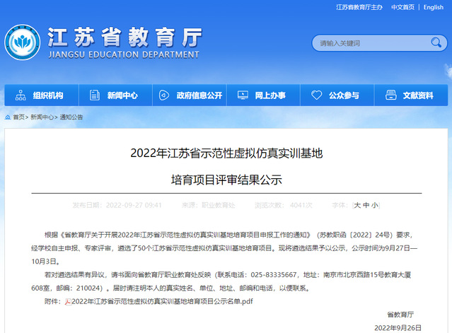近日,省教育厅公示了50个江苏省示范性虚拟仿真实训基地培育项目。