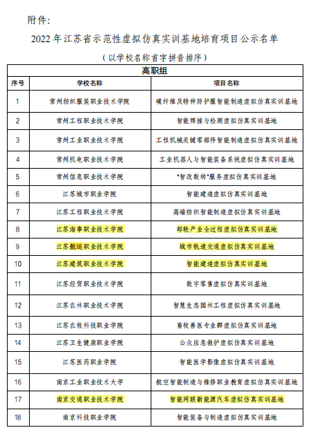 集团内七所中高职院校获得2022年江苏省示范性虚拟仿真实训基地培育项目立项