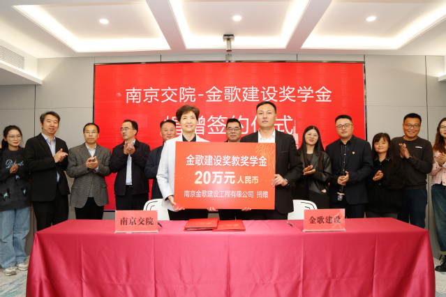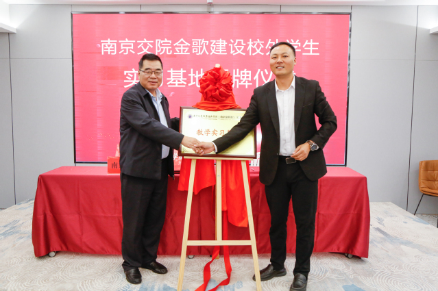 双方围绕企业发展、人才需求、校企合作等方面进行了深入探讨,举行了“南京交院—金歌建设奖学金”捐赠仪式和“南京交院金歌建设校外实习基地、教师企业实践基地”挂牌仪式。