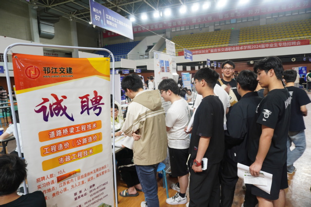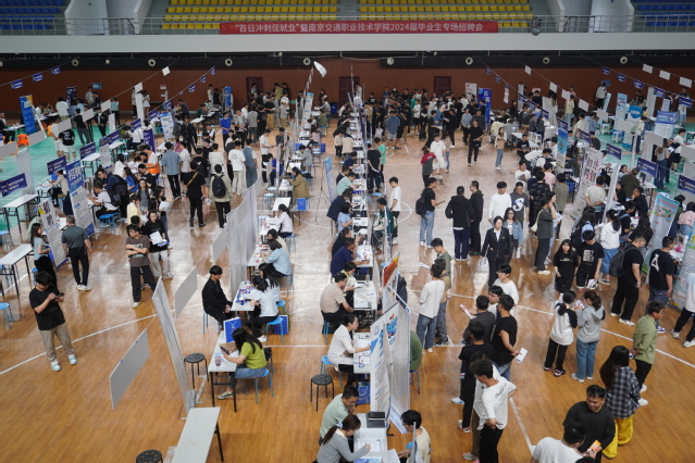 5月15日,联合江苏省高校招生就业指导服务中心、江苏省劳动就业管理中心举办的“江苏省‘百日冲刺促就业’暨南京交通职业技术学院2024届毕业生专场招聘会”在南京交院举行。本次招聘会共有省内外152家用人单位参加,为学院2024届实习返校毕业生提供了就业岗位3300余个。招聘岗位面向汽车、路桥、运输管理、电子信息、轨道交通、建筑、人文艺术等专业毕业生。