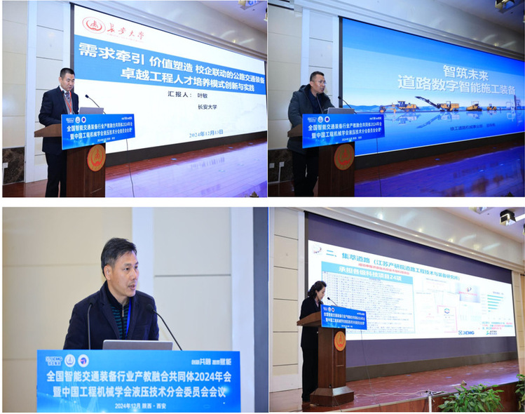 12月13日,全国智能交通装备行业产教融合共同体2024年会暨中国工程机械学会液压技术委员会会议在长安大学召开,会议由徐州工程机械集团有限公司、长安大学、南京交通职业技术学院联合承办,江苏交通职教集团协办。长安大学副校长王建伟、陕西省机械工程学会副理事长兼秘书长景蔚萱、学院院长王道峰、副院长姜军出席会议,来自全国90余家企业、院校、行业组织、研究机构的共同体理事单位代表和行业同仁共150余人参加了会议。共同体理事长、长安大学工程机械学院党委书记高雁北,共同体秘书长、徐工集团道路机械事业部副总经理王锋主持会议。