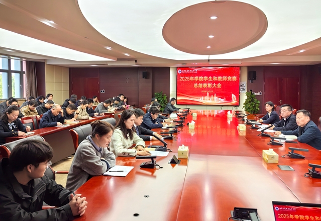 10月22日下午,学院举行2025年度学生与教师竞赛总结表彰大会。学院党委书记张毅、党委副书记文爱民、副院长刘雪芬出席会议,会议由党委副书记文爱民主持。