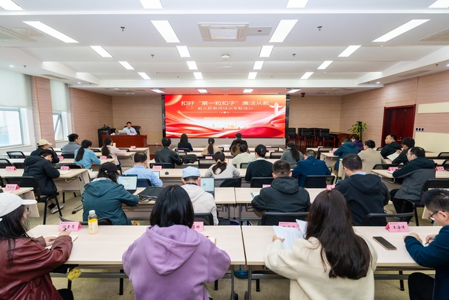 以案为鉴明底线,廉洁从教铸师魂。学院纪委书记张徐刚以《扣好“第一粒扣子”廉洁从教》为题开讲,围绕高校教师职业道德规范与纪律要求展开系统阐释。报告从“以案为鉴,警钟长鸣”“廉洁从教,为人师表”“严以修身,慎微笃行”三个维度,结合教育系统典型案例深刻剖析廉洁自律的时代意义,强调教师在立德树人过程中肩负关键使命,并要求新教师将清正廉洁理念融入课堂教学、学术研究与学生培养全过程,以实际行动争做新时代“四有”好老师,为构建清廉校园夯实基础。